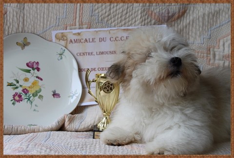 A cette occasion, nous avons reçu un diplôme de la part du Président pour le titre de Champion de France de Charlie Brown ainsi que de jolies récompenses pour Gonzo the Great (bientôt 4 mois, en photo) qui s'est vu désigné "coup de coeur du Président" en ( très) jeune Coton puis en Coton tous âges confondus.