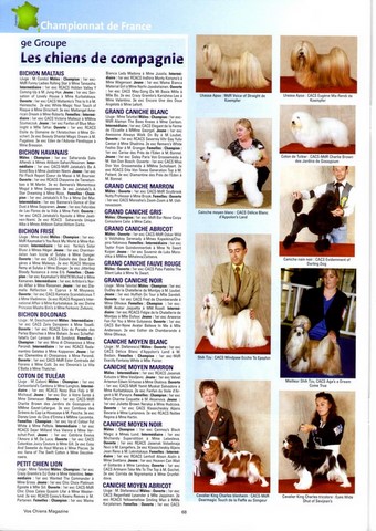 Notre "Puppy" se distingue en photo dans le numéro de septembre du magazine Voschiens qui reprend tous les résultats du Championnat de France et de la Mondiale 2011 à Villepinte.