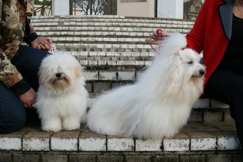 Une excellente première place pour Charlie en classe intermédiaire, une Réserve de CACS et un TAN bien réussi, une deuxième place honorable pour Butty en classe ouverte, notre Coco confirmée et "tanée" également et....la toute première sortie de notre choupinette Divine du royaume des lys blancs qui malgré ses petites frayeurs de débutante remporte un Très prometteur. Nous vous invitons à la découvrir sur sa page (en contruction) mais la voici déjà posant fièrement avec son papa le magnifique CH.Zodiac of the swift cotton.