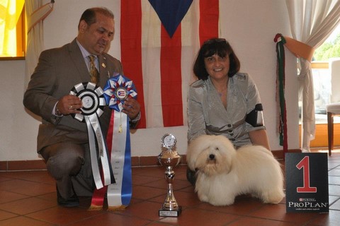 Pour sa seconde sortie à l'étranger, Gonzo the Great remporte les CAC, CACIB et Meilleur de race pour notre plus grand plaisir. Le voici donc bien engagé dans le championnat international et prêt pour la suite du championnat d'Espagne. Notre petit bonhomme supporte bien les voyages et les nuits d'hôtel, trouvant encore de l'énergie pour faire quelques petites embardées sur le ring. Mais que serait le Coton sans son caractère enjoué quelques soient les circonstances...???